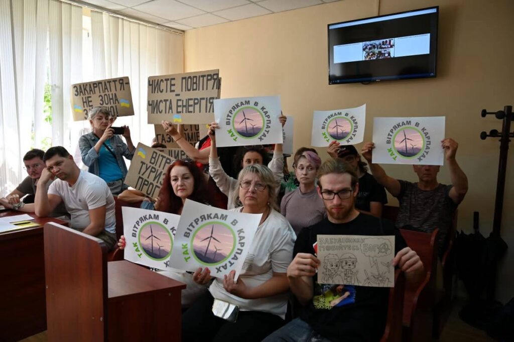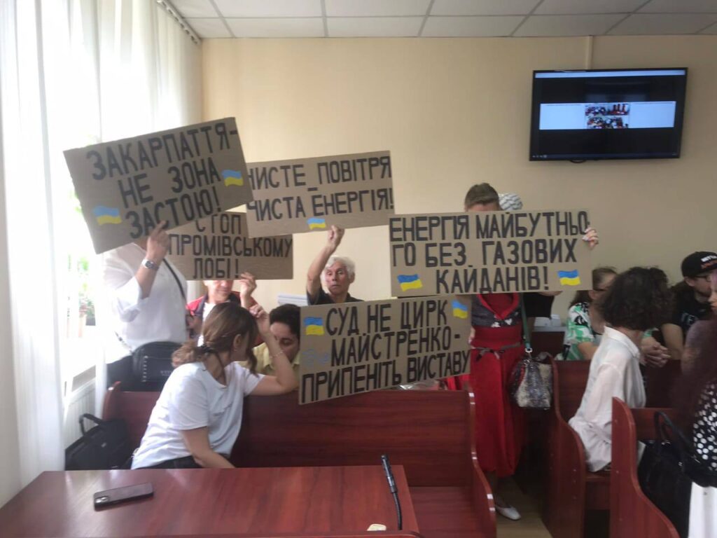 На заклик ГО “Екологічна файта” підтримати громаду до суду прийшло близько двох десятків закарпатців, переважно людей старшого віку. Вони демонстрували активну громадянську позицію, виступаючи за розвиток вітроенергетики. Проте псевдоекологічні активісти поводилися зухвало: ображали присутніх, називаючи їх “проплаченими провокаторами” та “бандюками”, штовхали та намагалися залякати.